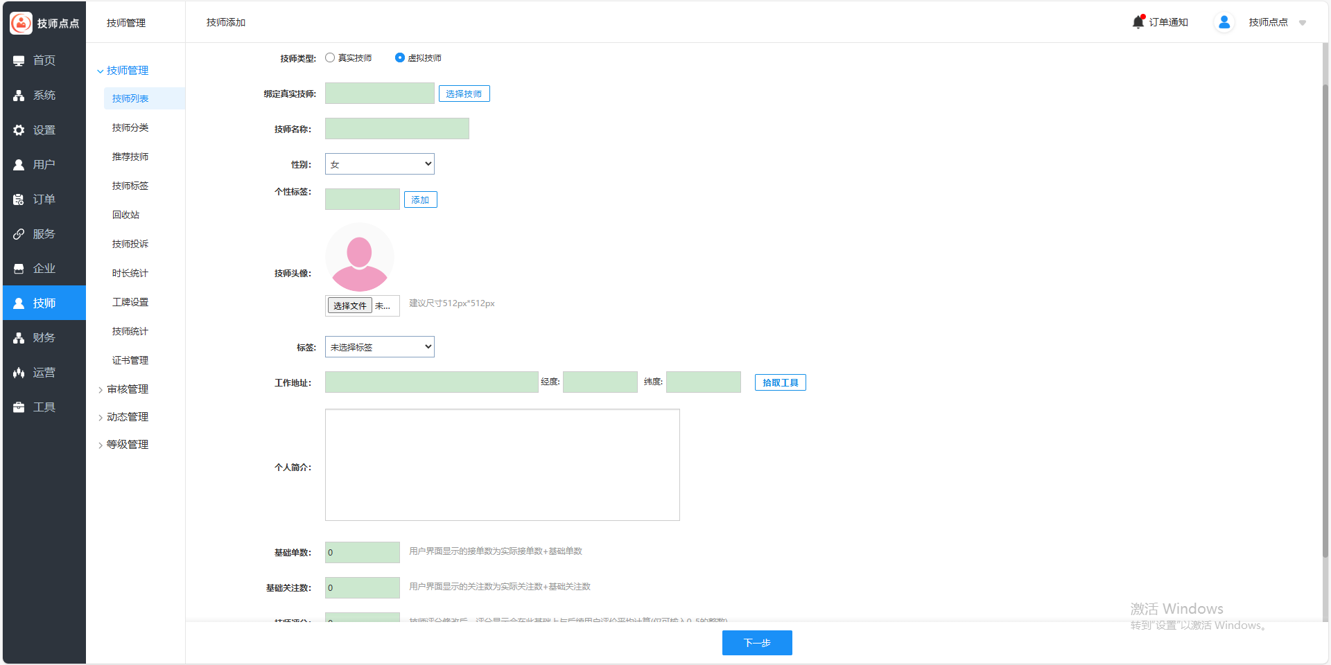 ● 支持技能分类与等级认证,提供精准的技师升级规则。